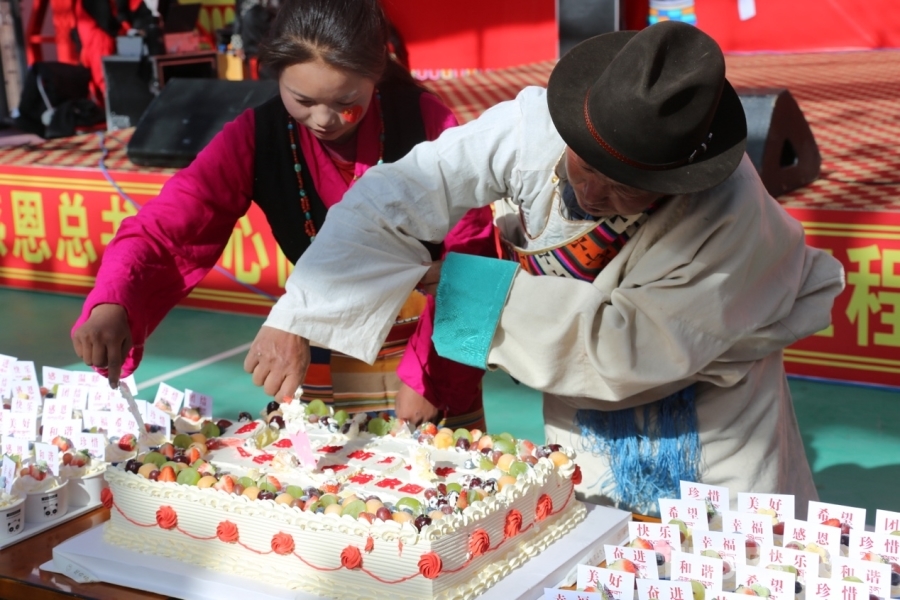 文艺演出环节精彩纷呈。定结县艺术团与郭加乡群众共同奉献了融合歌舞、小品的原创节目,生动展现灾后重建的丰硕成果与群众昂扬向上的精神风貌。活动中,受灾群众代表与村干部先后登台,真情讲述一年来家园重建、生活改善的点点滴滴,言语间充满感恩与希望。随后,切蛋糕活动将气氛推向高潮,群众代表与干部共同切开象征甜蜜新生活的蛋糕,并由志愿者分发给在场每一位参与者,共享温暖与喜悦。