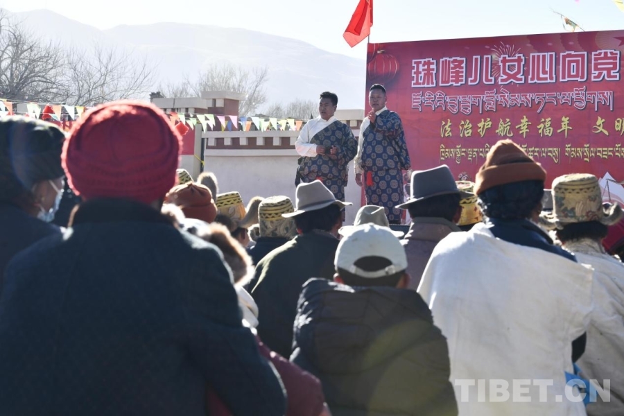 中国西藏网讯 1月7日,在日喀则农事新年即将来临之际,西藏日喀则市拉孜县锡钦乡以一场别开生面的“村晚”为喜迁新居的受灾群众迎接第一个新年。通过群众自编自演的文艺节目、互动式法治宣讲、政策解读等生动形式,把法律知识、文明新风融入节日活动。不仅丰富了农村精神文化生活,传承了优秀传统文化,更以群众喜闻乐见的方式传播法治理念,引导群众自觉尊法学法守法用法,展现出灾后重建家园、共创美好生活的信心与力量。(中国西藏网 记者/赵振宇 旦曲)