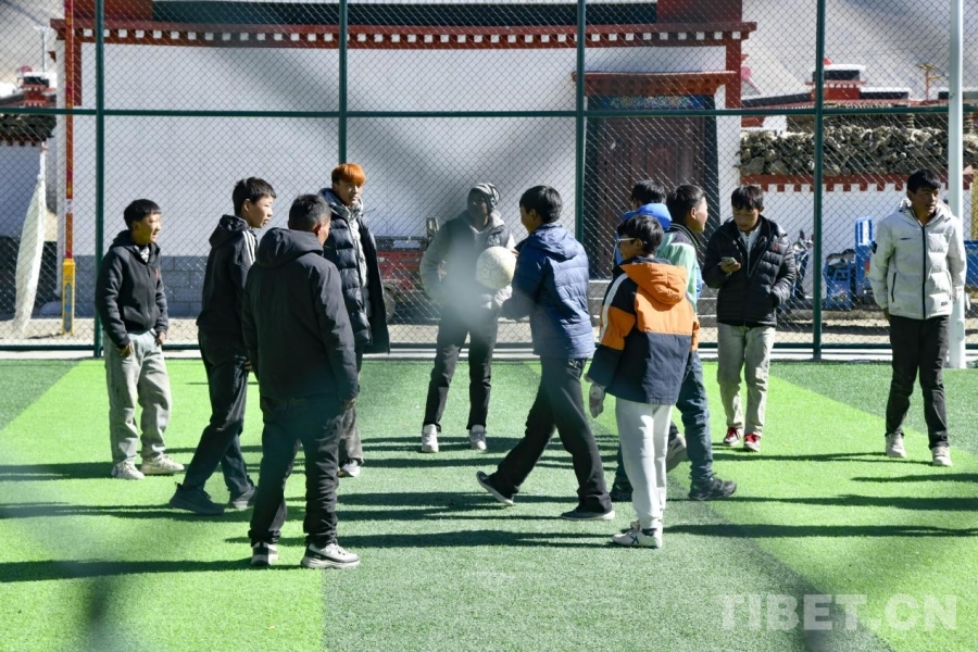 图为在定日县长所乡森嘎村的足球场上,村中的孩子们正在组织足球比赛。摄影:赵振宇