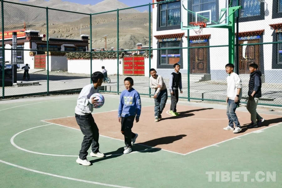图为在定日县长所乡森嘎村的篮球场上,一场篮球对决正在开展。摄影:赵振宇