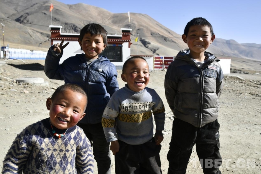 图为定日县长所乡古荣村的小朋友们在新居前快乐合影。摄影:赵振宇